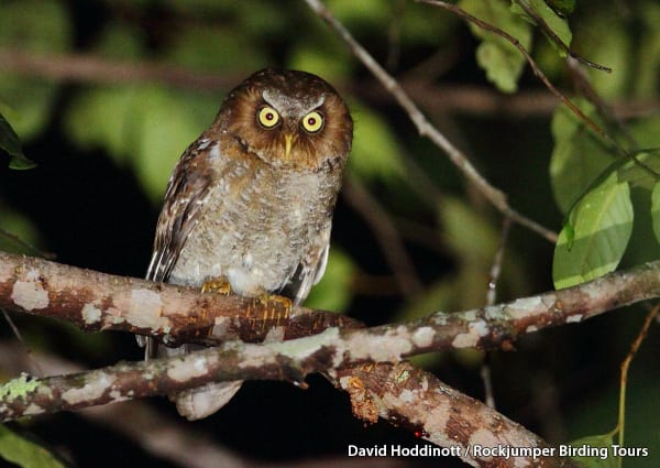 猫头鹰似乎吸引了许多观鸟者,我当然是那些看到这些美妙的鸟类而感到无比高兴的人之一。这种特殊的物种非常小,而且非常令人惊叹,而且由于自发现以来目击次数极少、缺乏数据且难以捉摸,因此也存在一定的神话。在我们 2013 年的 Rockjumper 之旅中,我们多次听到这个物种就在附近,但没有看到它,它就像一个幽灵。我们在晚上和凌晨花了很多时间寻找这种高度难以捉摸的物种,但没有成功。这种情况在 2014 年再次发生,有很多次我们不幸的是没有在几米外听到该物种的声音。直到我们在弗洛勒斯岛的最后一个晚上,以极大的耐心和毅力做出了最后的努力,我们才终于看到了这种美景。多棒啊!